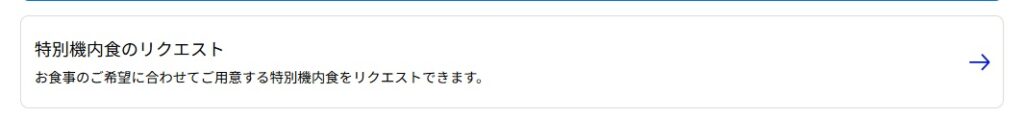 3.画面をスクロールし、「特別機内食のリクエスト」をタップ