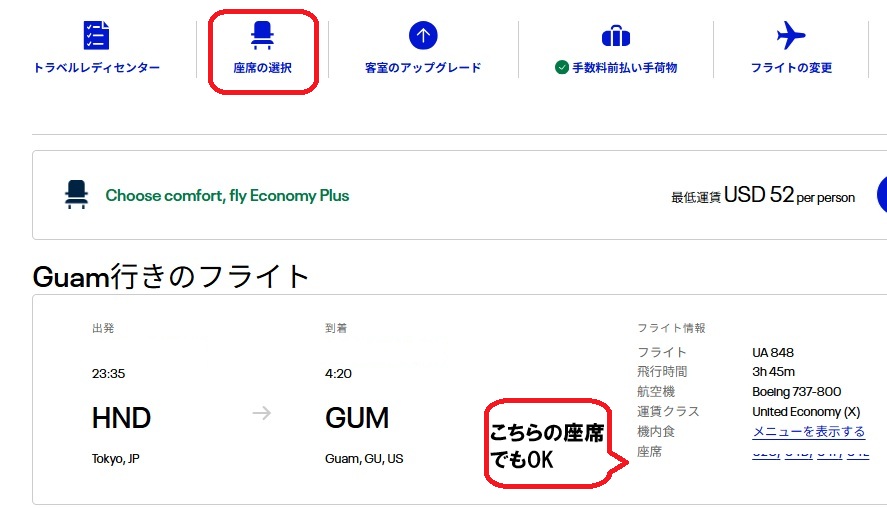 ただし、ユナイテッド航空との連携に時間がかかることがあり、座席情報の反映がすぐにはされない場合があります。