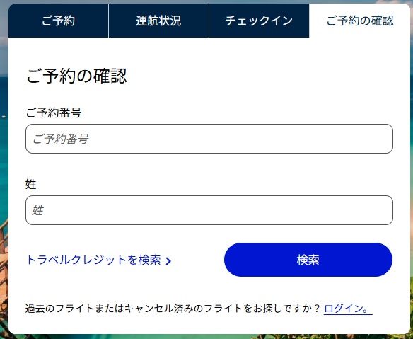 1.ユナイテッド航空の公式サイトにアクセス → 予約情報にログイン