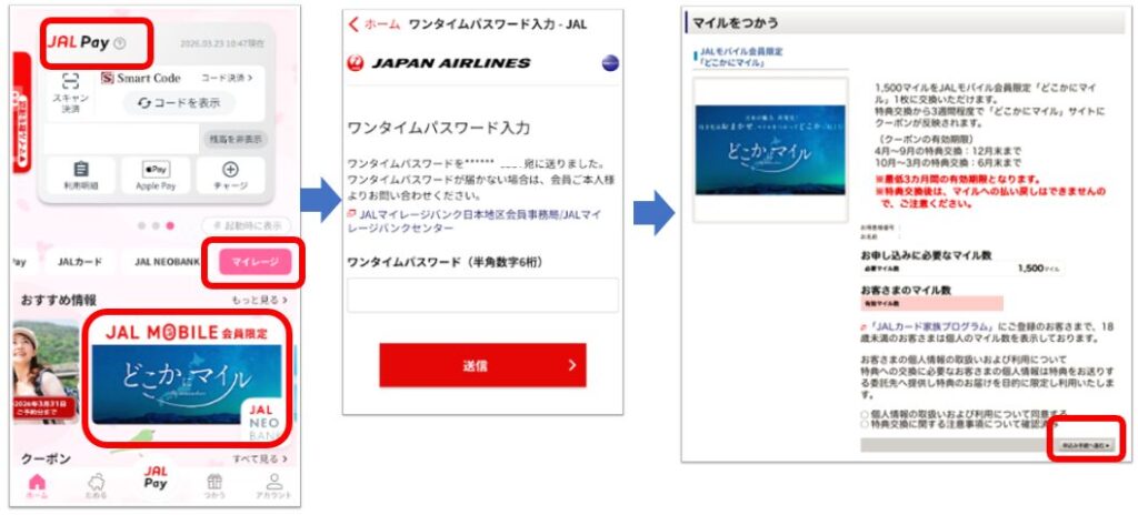 📱 JALモバイル会員限定「どこかにマイルクーポン」の取得方法