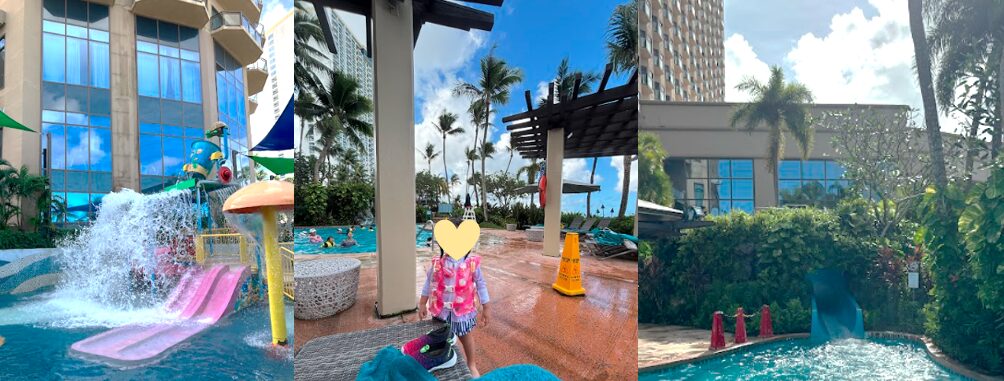 ホテルのプールは種類が豊富で、子供用プールも完備。