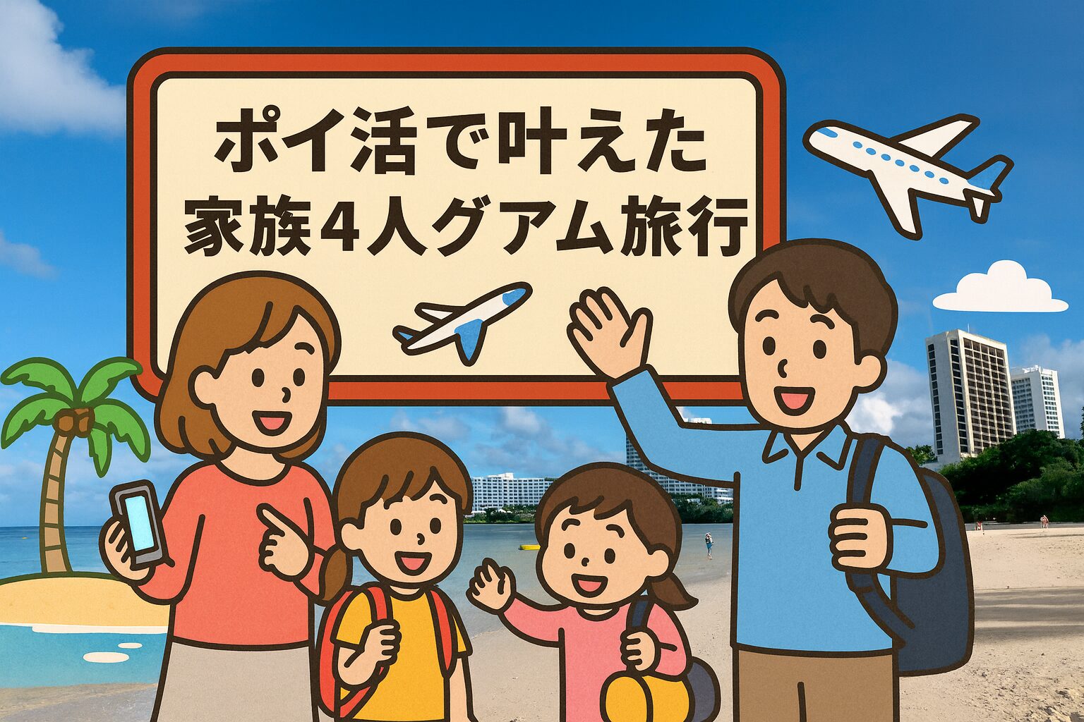 半年間ポイ活で貯めたポイントをマイルに替え、ついに家族4人分のグアム行き航空券をGET!