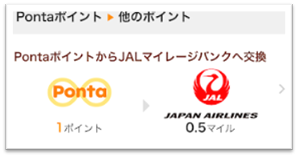 • ポイント交換レートは、1Pontaポイント→0.5JALマイル