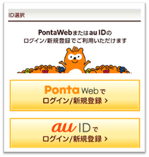 Pontaアプリを利用の方は、この時点でPonta WebまたはAU IDのログイン画面になるのでログインします。