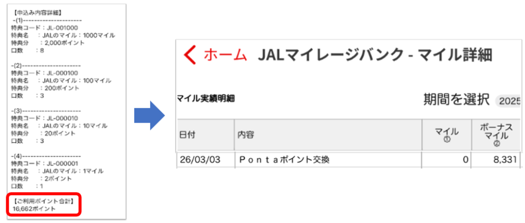 • PontaポイントをJALマイルに交換する手順